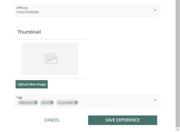 When you are ready to submit the record, scroll to the bottom of the window and press the “Save Experience” button. This will add your record to your assigned learning list.