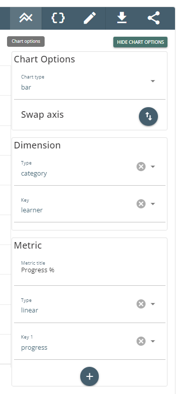 Lets you select the data set. If more than one data set is available, you can click on the + button to display multiple datasets on the same report.