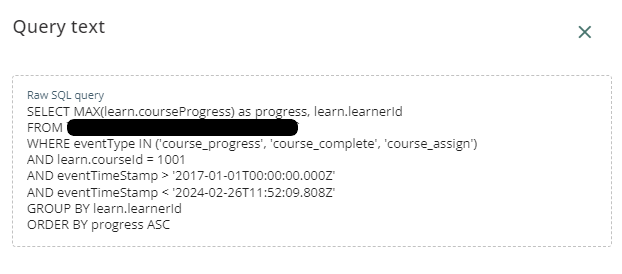 Opens a popup and displays the raw SQL query used to create the report. Can copied and inserted into the Custom query option, which then allows for modifications to be made to suit any particular requirements.