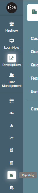 To access the reporting feature, a user with the CPD Admin role can access the page by clicking on the Reporting icon in the Navigation bar whilst in DevelopNow.