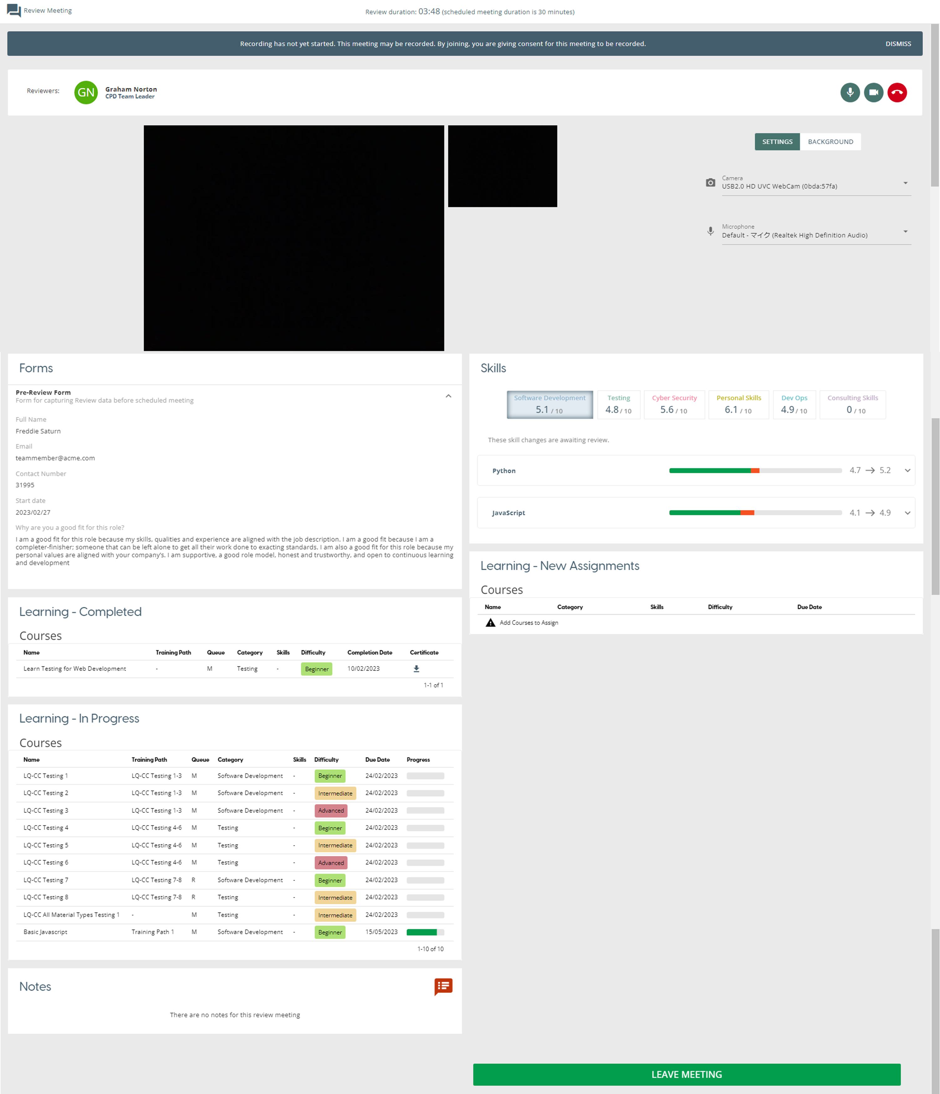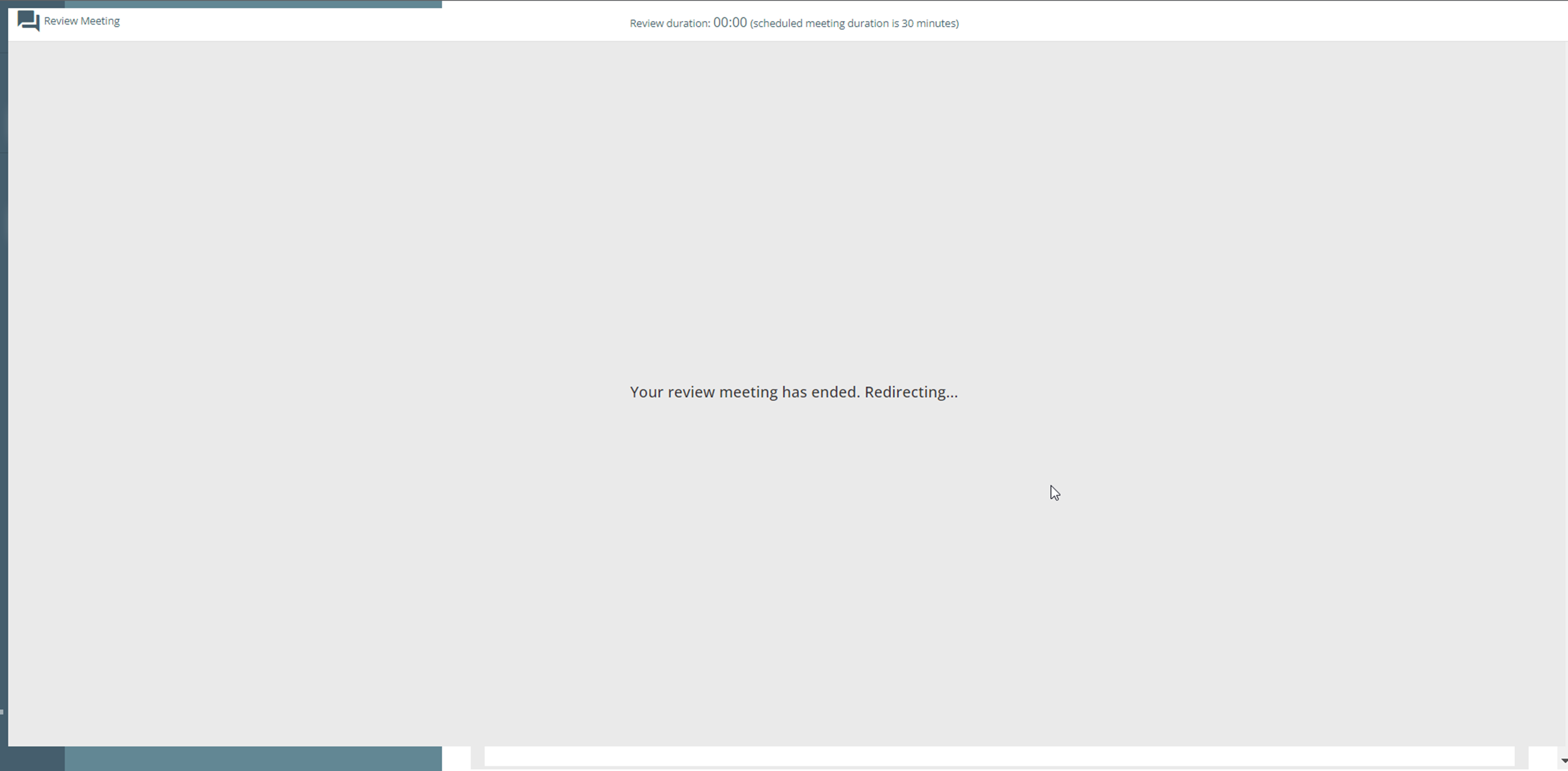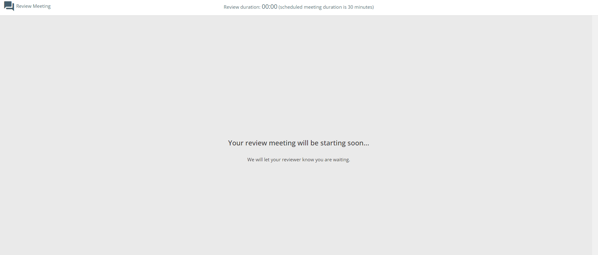 Up to ten minutes before the start of the meeting, the Reviewee can select a ‘Join Meeting’ button underneath the Review Process to start their meeting.