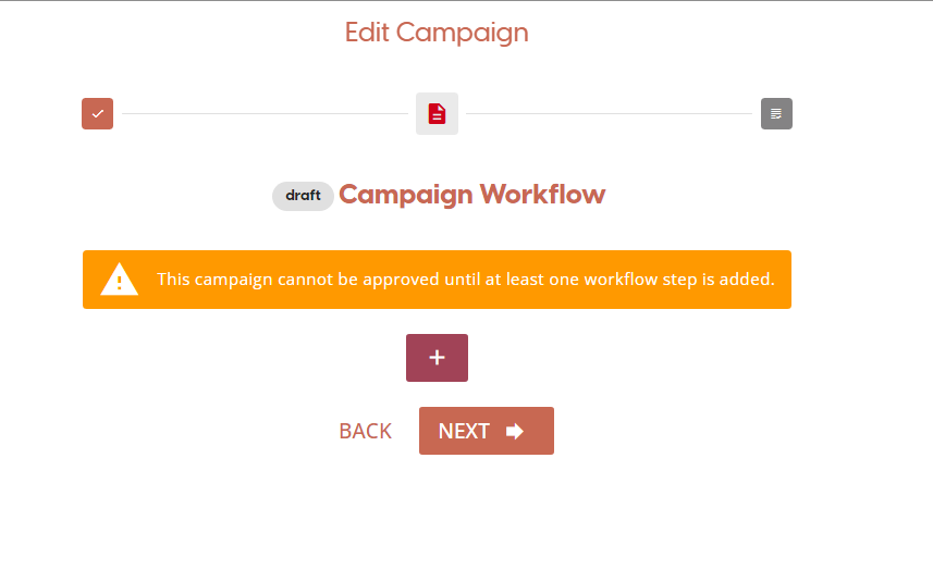 You can add workflow steps to a Campaign Workflow in this screen. Current step types available are listed below: