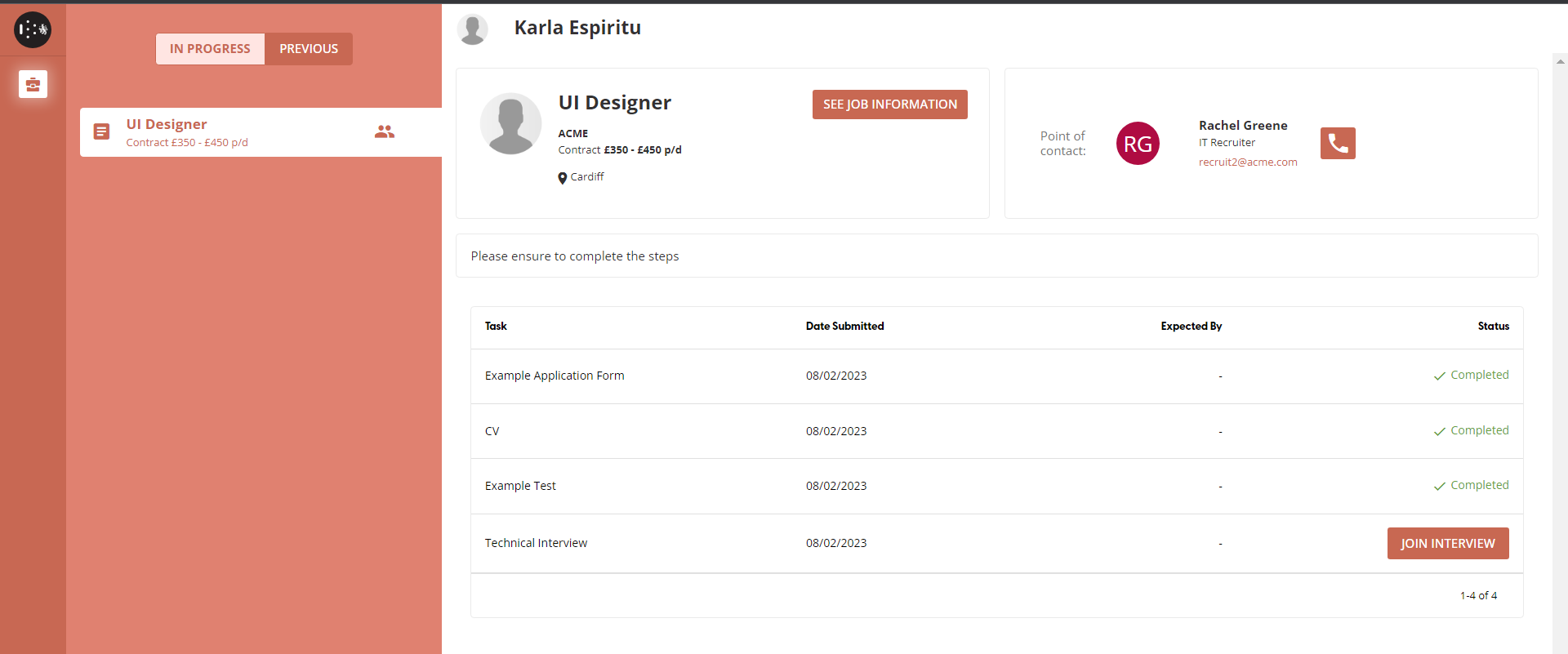 Applicants will also see a “JOIN INTERVIEW” button on the applicant portal 10 minutes before the scheduled start time.