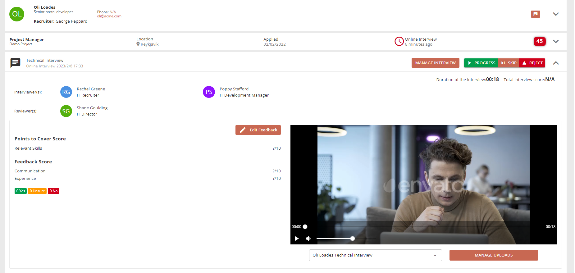 The interview video will now be available on the application screen and feedback can be left by the interviewer(s) and reviewer(s).