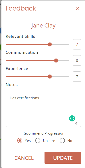 After selecting an interview to review the reviewer is able to see any existing feedback left by interviewers or other reviewers.