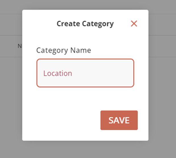 Clicking on the button will open a dialog which will allow the user to give the category a name. A category name must contain at least 2 characters and must be unique.