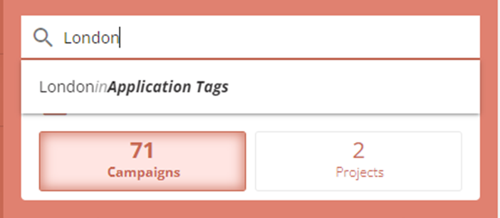 The search bar in HireNow will also filter applications based on tags. Typing in a tag name into the search bar will provide an option to filter applications to only show applications that have that tag associated with it. Tag categories can also be searched for, showing all the applications that have a tag associated with the category entered.