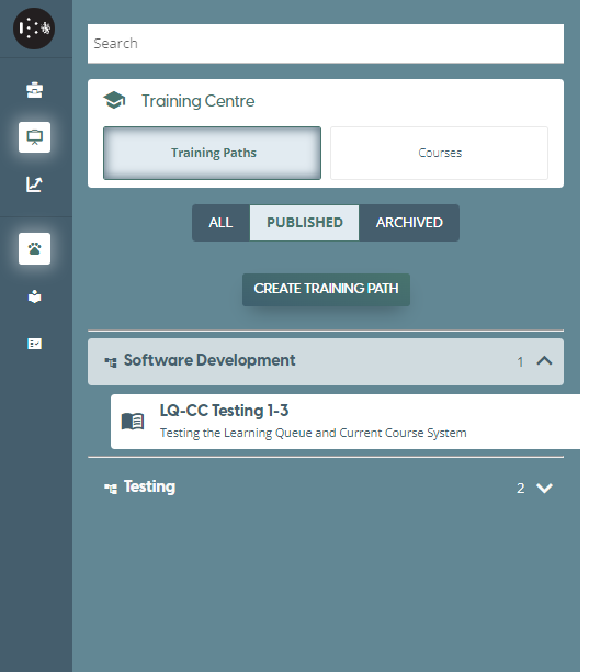 If the content of your training path changes after a training path has been published, you are able to create a new version of the training path. This feature allows you to modify the courses that are associated with the training path, and at the same time update the learning queues of the users who have already been assigned to the training path.