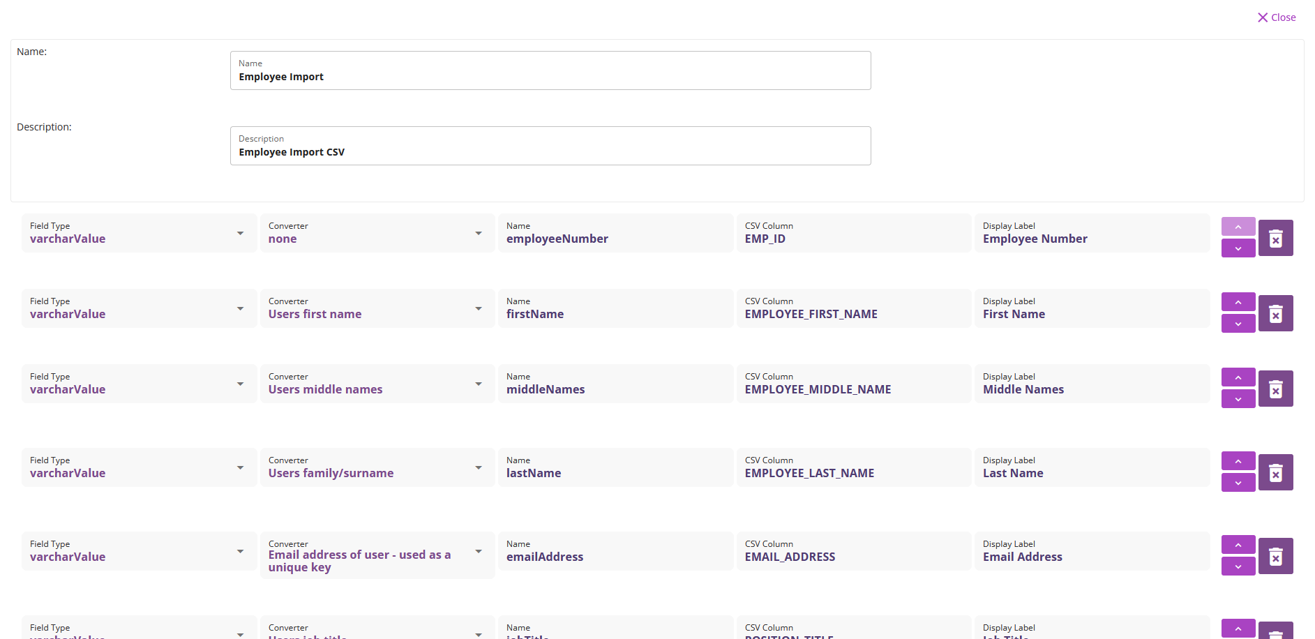 • Converter :  This is used to indicate that the field imported should be imported into the main user record itself.