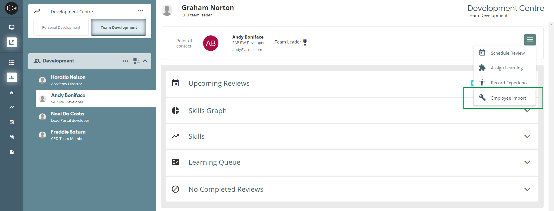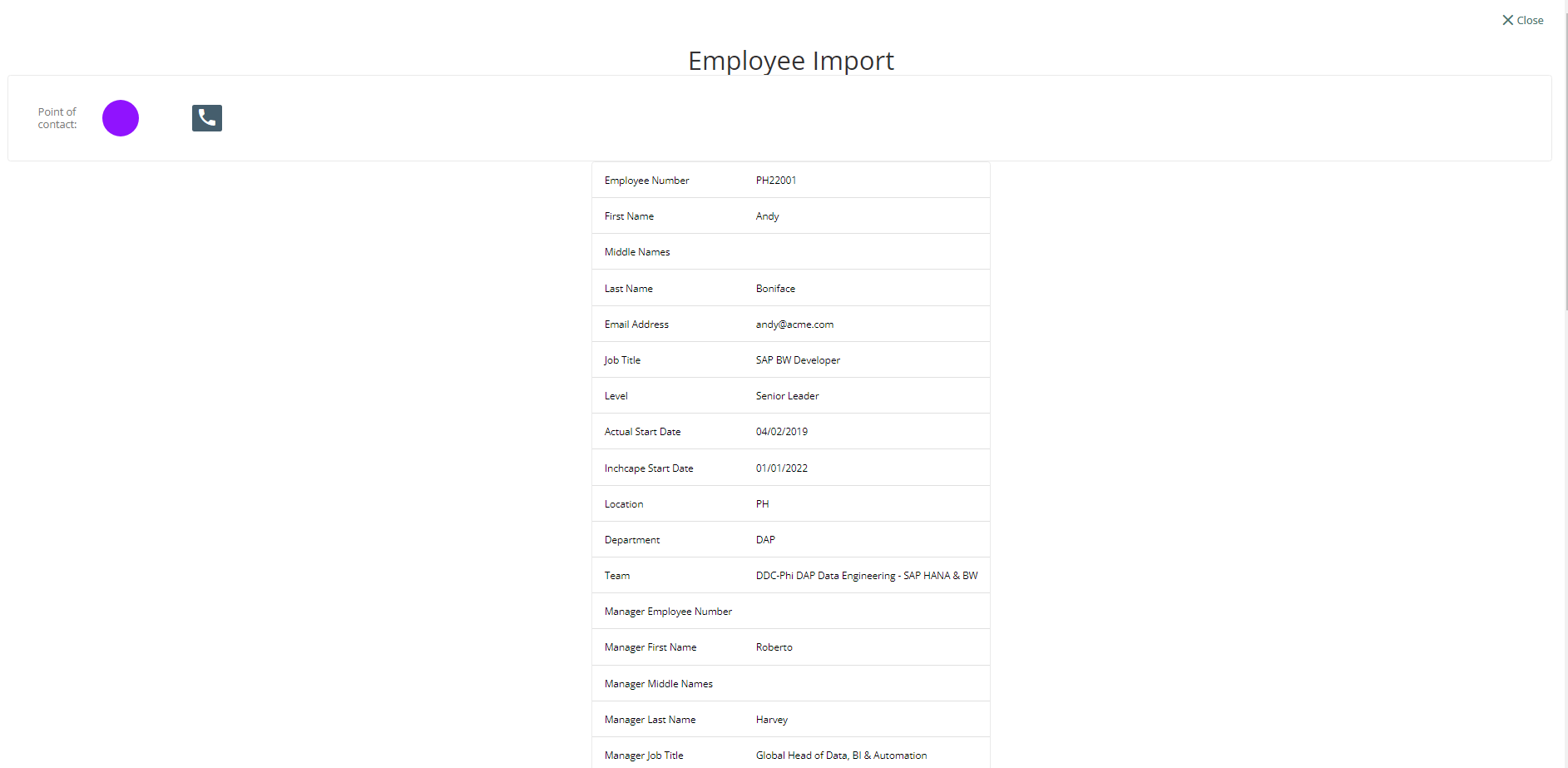 If a team member’s email address matches a record in the imported document, the values of that record will be displayed on the Employee Import page.