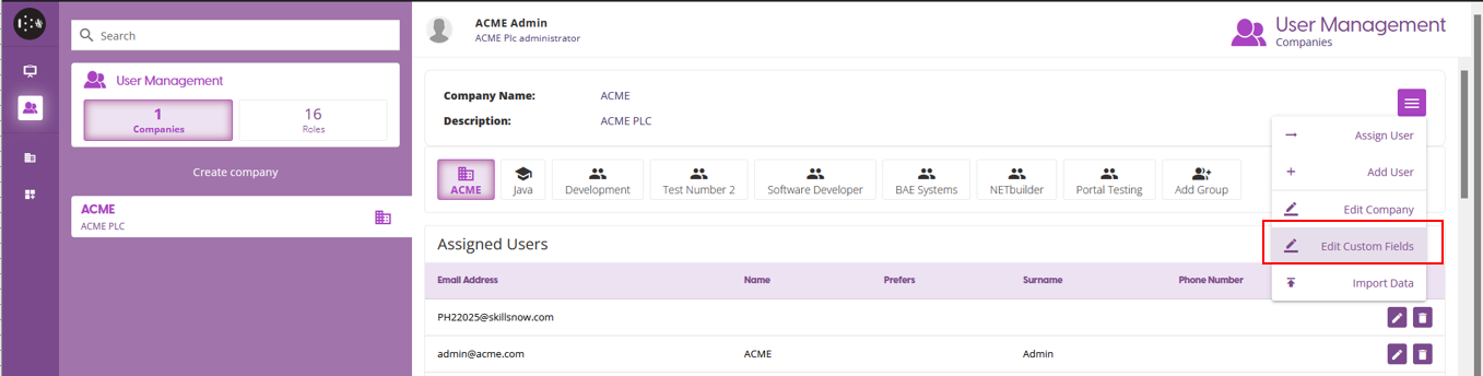 User Management Portal > Custom Fields