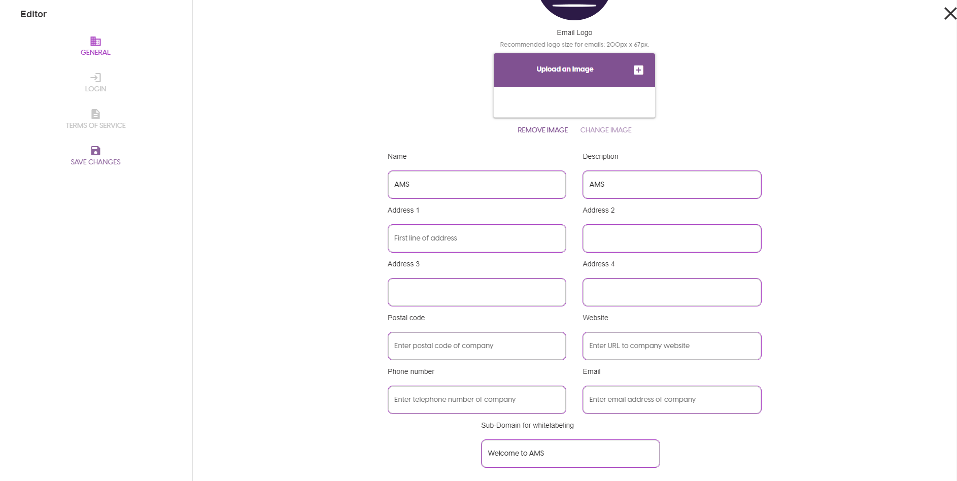 On the GENERAL menu item, you can set the sub-domain associated with the company you are enabling login page customisation for.