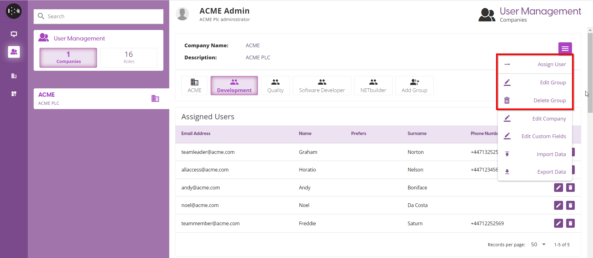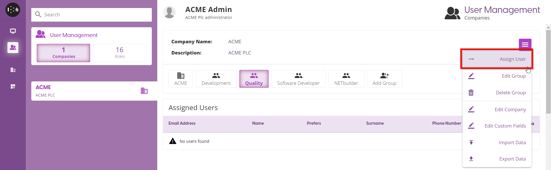 Click the User Group to add a user and use the ‘Assign User’ screen to assign a user to the selected group